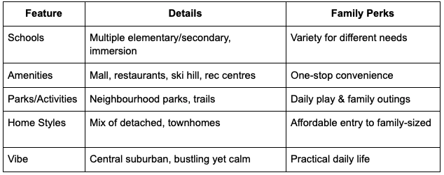 Valley East: Larger lots, francophone options, and affordable suburban space with parks and schools.